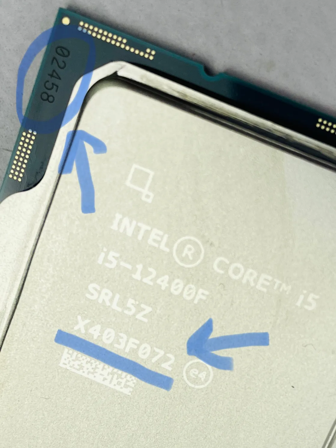 Процессоры Intel и AMD имеют два серийных номера. Фотографируем процессор так, чтобы на одном снимке чётко читалась модель и оба серийника. Затем делаем укрупняем — обрезая фото.