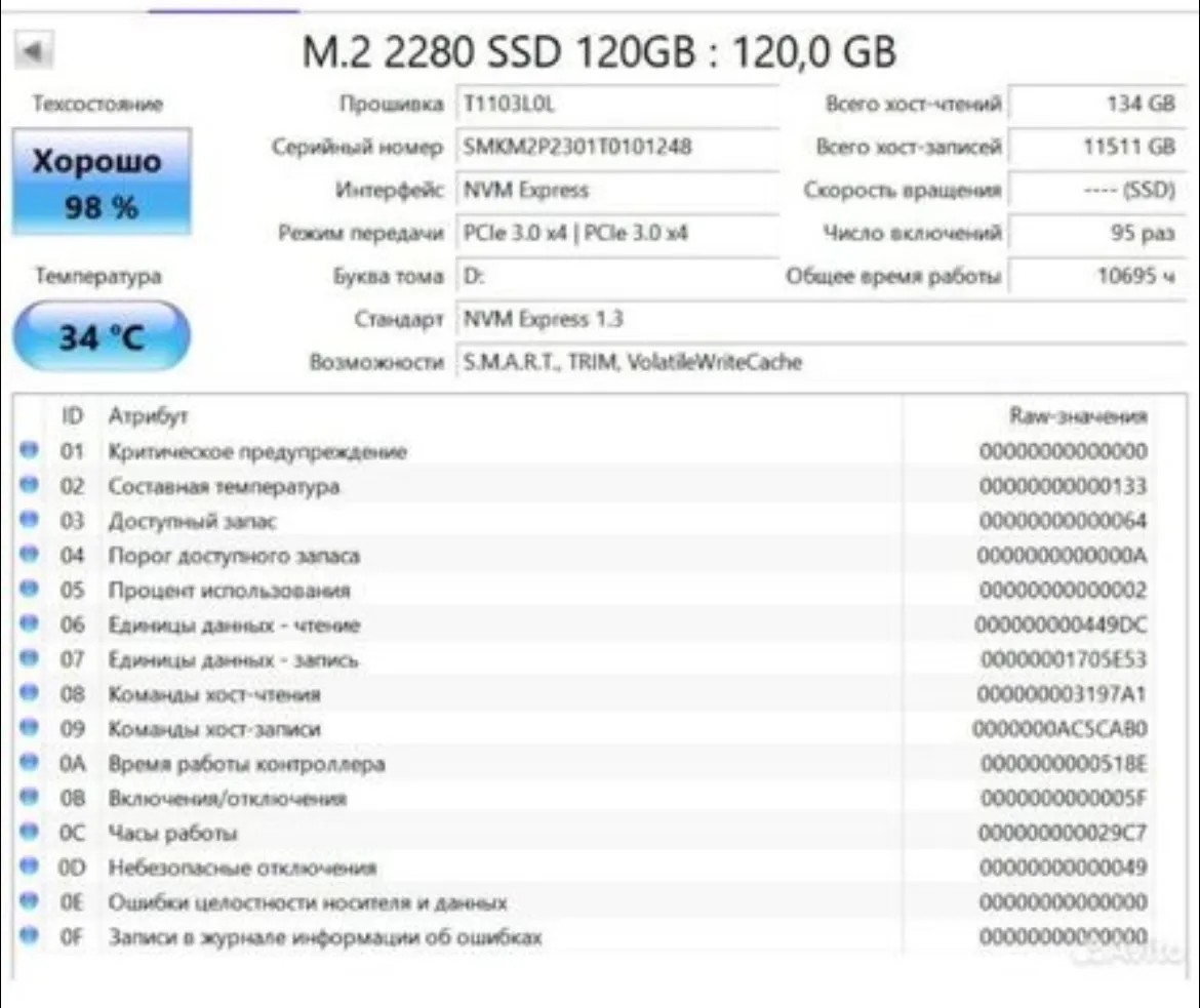 Накопители - добавляем к серийным номерам смарт накопителя, который свидетельствует о работоспособности диска.